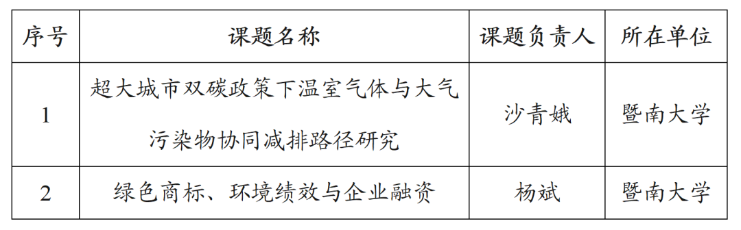 广州区域低碳经济研究基地依照公开招标、个人申报、专家评审的程序,最终确定广州区域低碳经济研究基地2023年度拟立项课题名单,现予以公示: