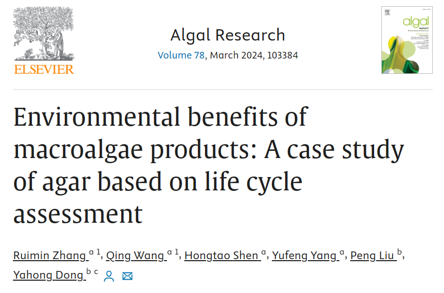 暨南大学人与自然生命共同体重点实验室(简称“实验室”)的杨宇峰教授、沈洪涛教授、王庆副教授和张睿敏博士生与澳门科技大学的董雅红教授团队合作,完成了Environmental benefits of macroalgae products: A case study of agar based on life cycle assessment的研究论文,近期在Algal Research期刊上发表。这是实验室通过多学科协同合作取得的研究成果。